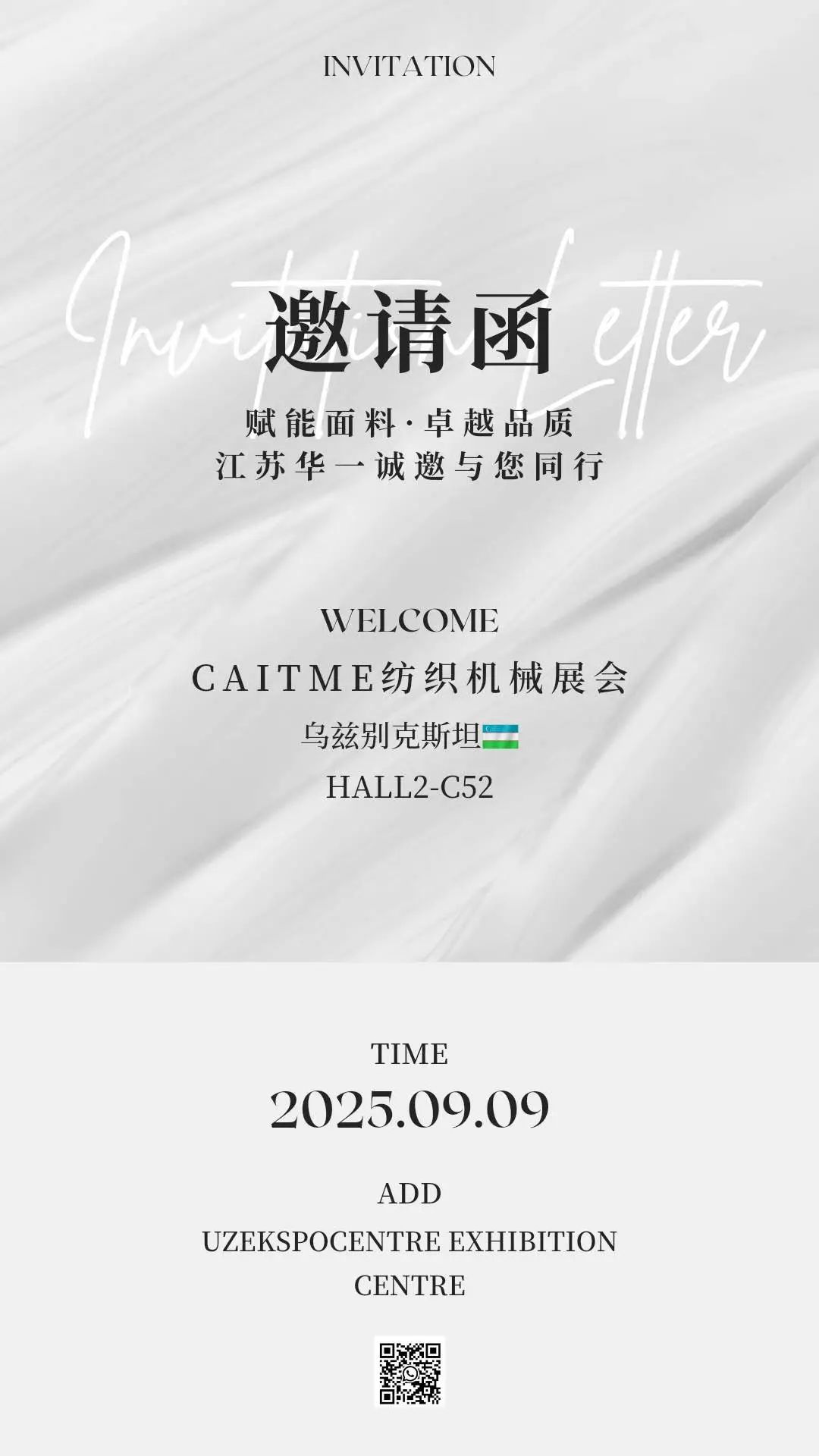 2025中亞國際紡機展(CAITME)即將盛大啟幕!9月9-11日,全球紡織機械領域的創新力量將齊聚烏茲別克斯坦首都塔什干,共同開啟一場覆蓋紡織全產業鏈的科技盛宴。江蘇華一機械將攜最新款空氣柔軟機SOFT100亮相CAITME展會。